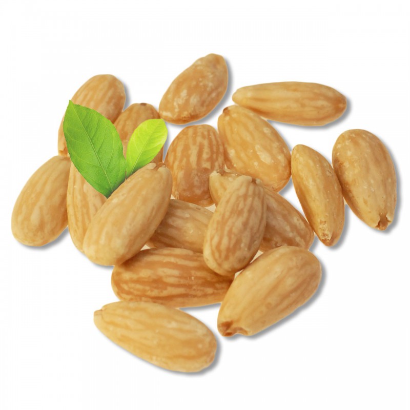 Vers gebrande witte amandelen zonder zout zijn een lekker tussendoortje. Gebrand in arachide olie wat ook een gunstige invloed heeft op je cholesterol.