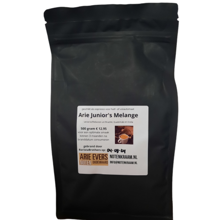 De melange is genoemd naar onze jongste zoon (Arie junior). Hij is gek op koffie en het liefst zwart en sterk.