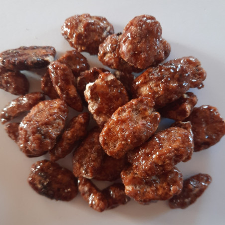 Gekarameliseerde pecannoten lekker knapperig en zoet. Lekker bij de borrel, maar natuurlijk ook als tussendoortje.