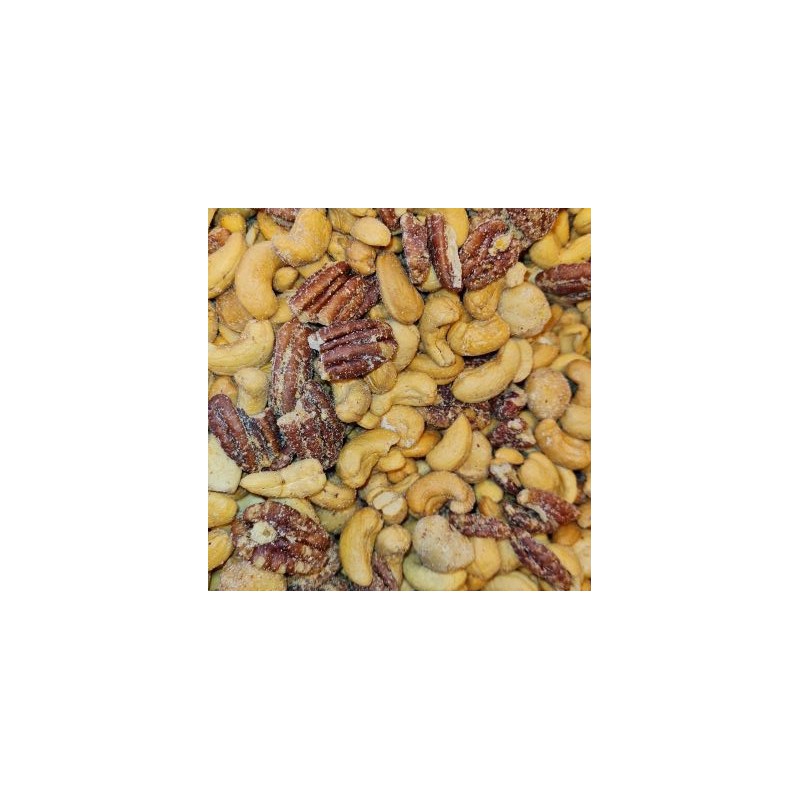 Gekruide NotenMix van versgebrande luxe noten zonder pinda's. Cashewnoten, Pecannoten, Macadamia's