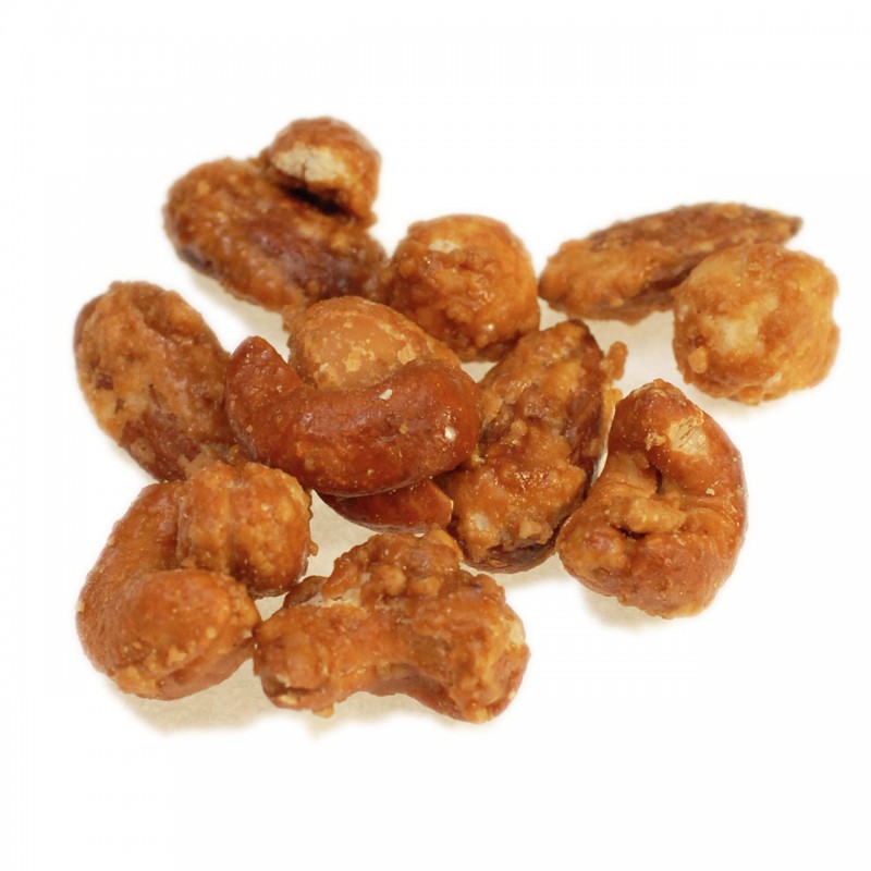 Cashewnoten, Amandelen, Macadamia, Pecannoten, Glucose siroop, Raapzaad olie, Arachide olie (pinda), Verdikkingsmiddel (E414), Honing, Suiker, Glansmiddel (E414), Kleurstof (E150a)