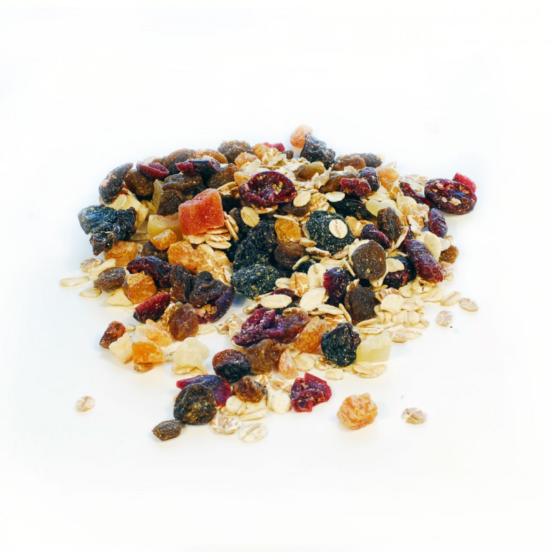 Muesli van haver, tarwe en gerstevlokken gecombineerd met cranberry's en vruchten voor een supergezond ontbijt!