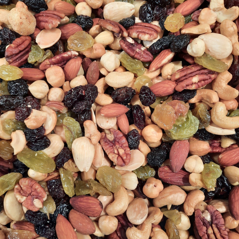 Een mix van heerlijke vers gebrande noten en rozijnen