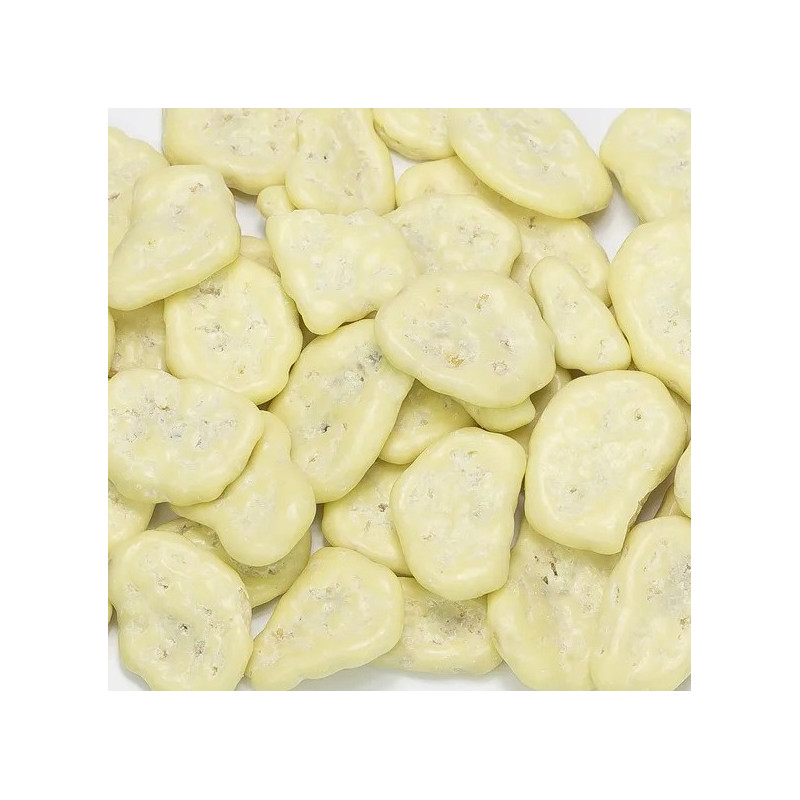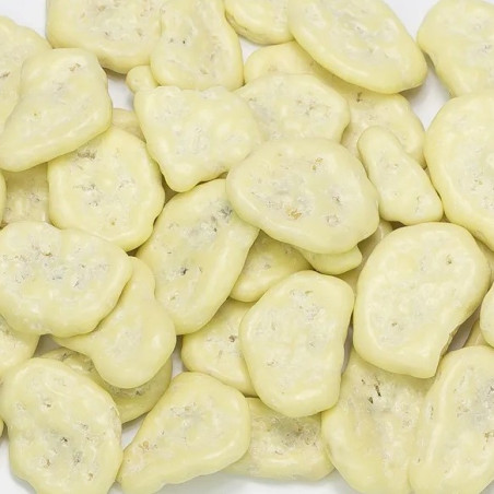 Bananenchips met een heerlijke coating van yoghurt en witte chocolade. Lekker als tussendoortje, maar ook lekker in de yoghurt bij het ontbijt.